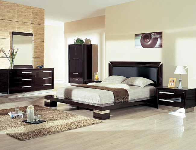 Romantic High Gloss Cream Bedroom with black color combination ideas